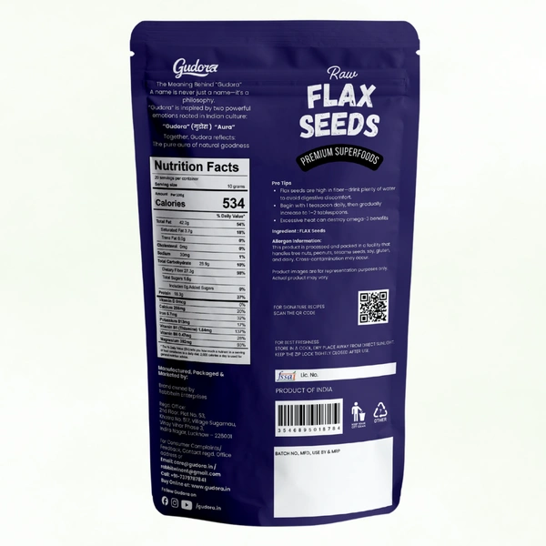At Gudora, we prioritize quality and freshness, ensuring that every pack of flax seeds delivers unmatched flavor and nutrition. Sourced sustainably and packaged meticulously, these seeds are perfect for anyone looking to lead a balanced and nutritious life.